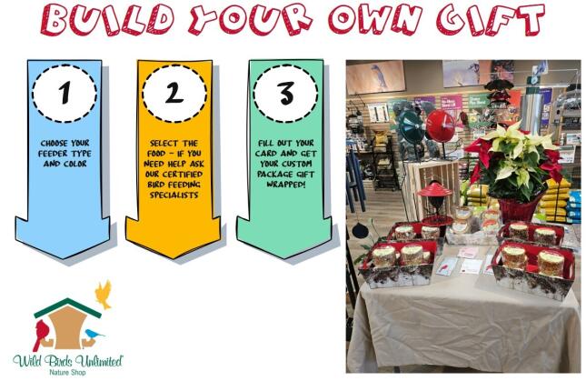 We have pre-wrapped gifts for your to grab and go OR you can build your own hand chosen gift with food and we will gift wrap it for you! We have loads of different feeders that you can build into your gift!